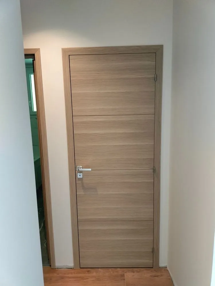 - Harmonisation des matériaux : chaque porte a été choisie en cohérence avec les sols, les plinthes et les menuiseries existantes pour un rendu fluide et moderne.