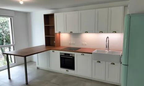- Cuisiniste pour création et pose de cuisine ouverte avec comptoir